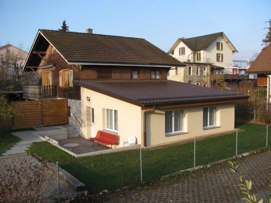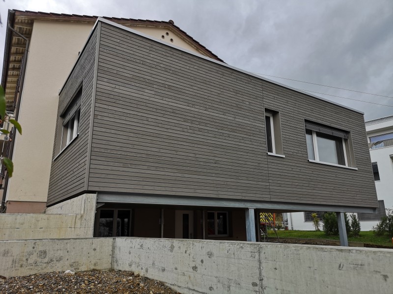Mit einer Erweiterung in Holzbauweise schaffen Sie zusätzlichen Raum ganz nach Ihren individuellen Bedürfnissen. Da Holz im Vergleich zu Massivbaustoffen ein geringes Eigengewicht aufweist, eignet es sich hervorragend für das Aufstocken bestehender Gebäude. Ob ein moderner Anbau, der Ausbau Ihres Dachgeschosses oder der Einbau einer kompletten zweiten Wohneinheit mit neuer Raumaufteilung – wir setzen Ihr Vorhaben um. Auch die Erweiterung Ihres Wohnraums nach draussen, etwa durch Wintergärten oder grosszügige Balkone, steigert die Lebensqualität und den Wert Ihrer Immobilie nachhaltig.