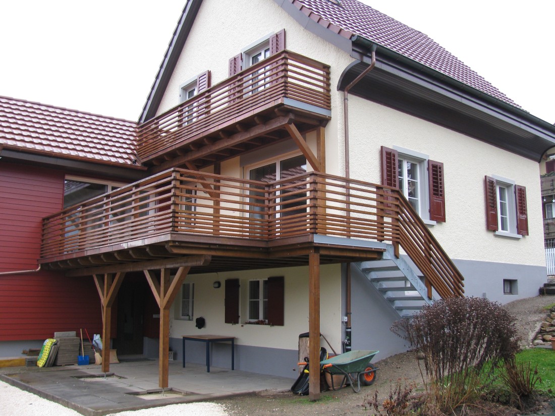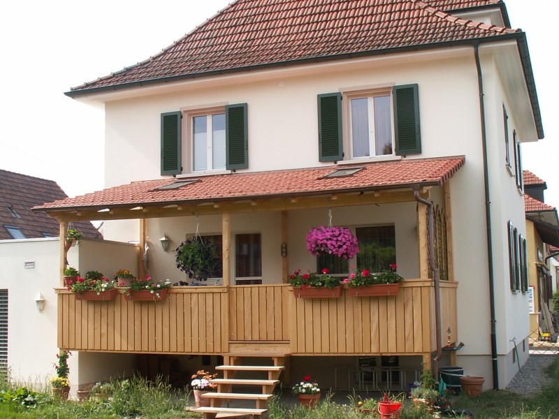 Vom frei schwebenden Balkon über zurückversetzte Loggias, überdeckte Sitzplätze bis hin zum Wintergarten stehen Ihnen bei uns alle Möglichkeiten offen. Wir bieten Ihnen flexible Konstruktionsmöglichkeiten – von der reinen, natürlichen Holzkonstruktion bis hin zur modernen Kombination aus Holz- und Stahlelementen für maximale Stabilität und Langlebigkeit. Je nach Wunsch planen und bauen wir Ihren neuen Aussenbereich mit einer schützenden Bedachung oder als offene Sonnenterrasse.