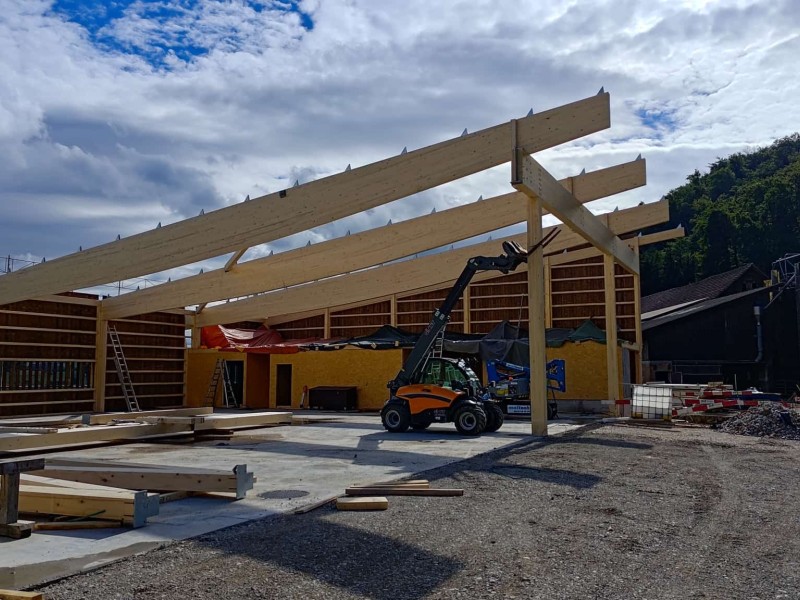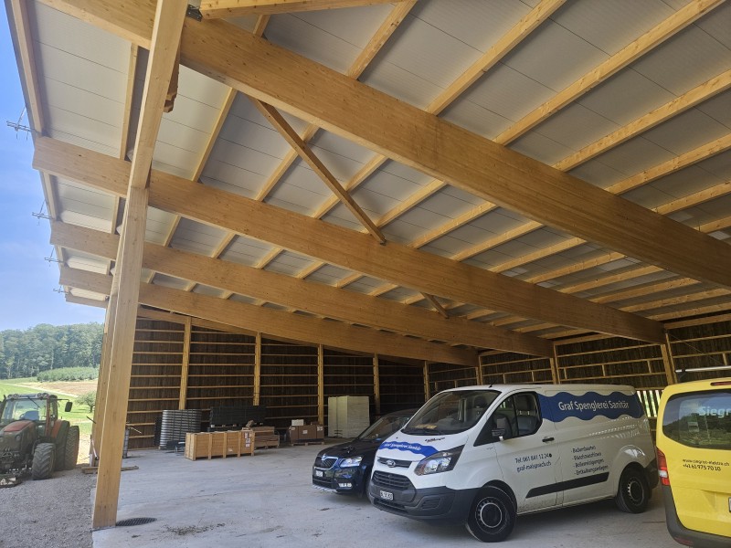Gewerbe- und Landwirtschaftsbauten sind stets eine anspruchsvolle Aufgabe, die das Herz eines jeden Zimmermanns höherschlagen lässt. In der Landwirtschaft wird seit jeher auf den Baustoff Holz vertraut – aus gutem Grund. Die Einsatzmöglichkeiten sind äusserst vielseitig, die Bauzeit ist kurz und die Beständigkeit überzeugt über Generationen hinweg. Als Ihr erfahrener Partner in Möhlin realisieren wir Hallenbau-Projekte, die exakt auf Ihre betrieblichen Abläufe zugeschnitten sind.