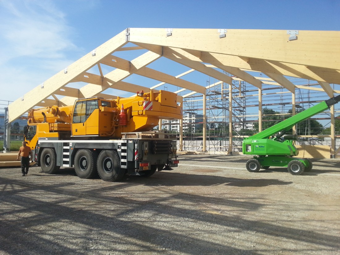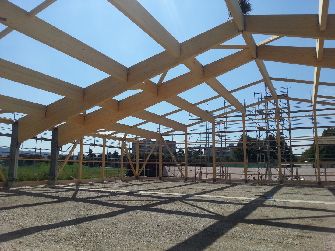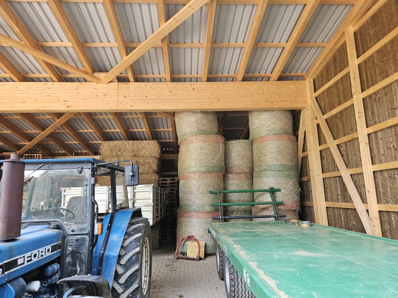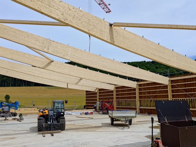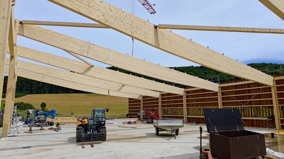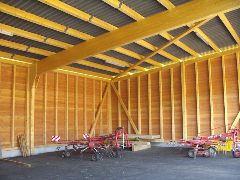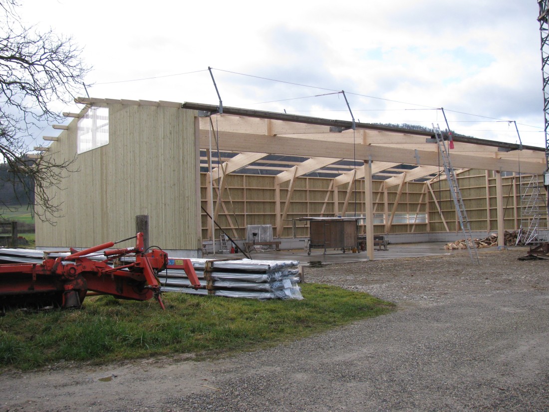 Besonders beim Bau von Hallen mit grossen Spannweiten ist Holz als statisches Element bestens geeignet. Es ist auch heute noch der beliebteste Rohstoff für Bauten in der Landwirtschaft, denn es sorgt selbst in sehr grossen Gebäuden für ein angenehmes und reguliertes Raumklima.