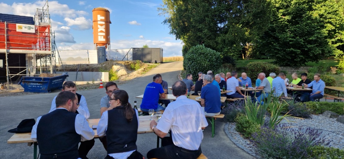 Am 11.06.2025 haben wir das Dach des Einfamilienhauses aufgerichtet und am 09.07.2025 sind wir zum Richtfest eingeladen worden. Wie es sich gehört haben wir das neue Haus geweiht und wünschen der Bauherrschaft nur das Beste im neuen Heim.