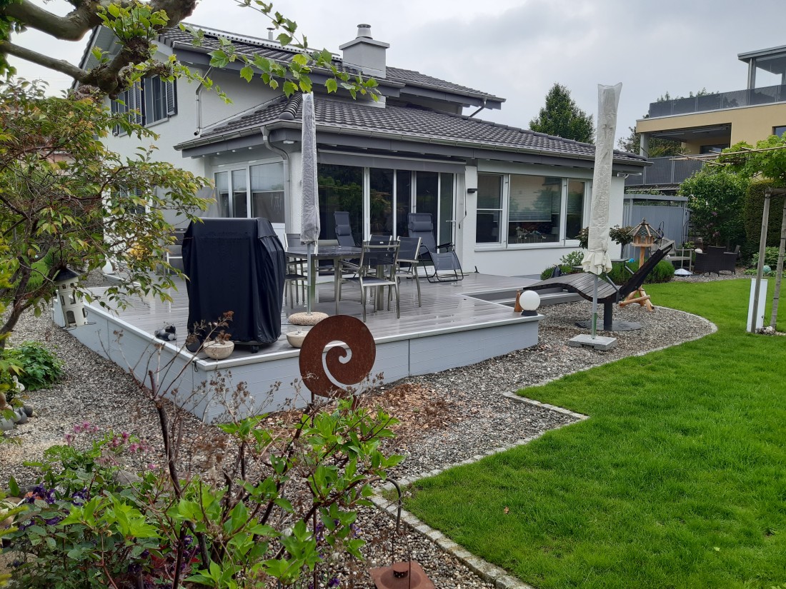 Verbinden Sie Ihr Wohnzimmer nahtlos mit Ihrem Garten, indem Sie einen ästhetischen Aussenbereich mit einem massgeschneiderten Terrassendeck schaffen. Ob für gemütliche Grillabende oder als privater Rückzugsort zum Entspannen – wir setzen auf Materialien, die Barfuss-Feeling mit Langlebigkeit kombinieren. Dabei haben Sie die Wahl zwischen der natürlichen Wärme von Holzdielen und den modernen, äusserst pflegeleichten WPC-Dielen. Wir beraten Sie umfassend zu den Vorzügen der verschiedenen Materialien und realisieren individuelle Lösungen, die sich harmonisch in Ihre Gartenlandschaft einfügen und auch nach Jahren noch durch Formstabilität und Optik überzeugen.