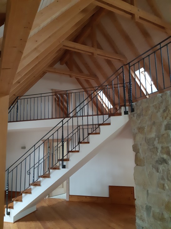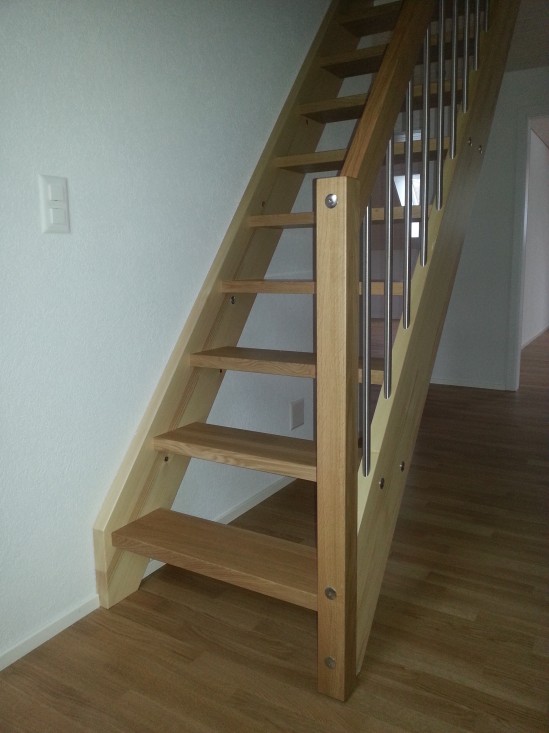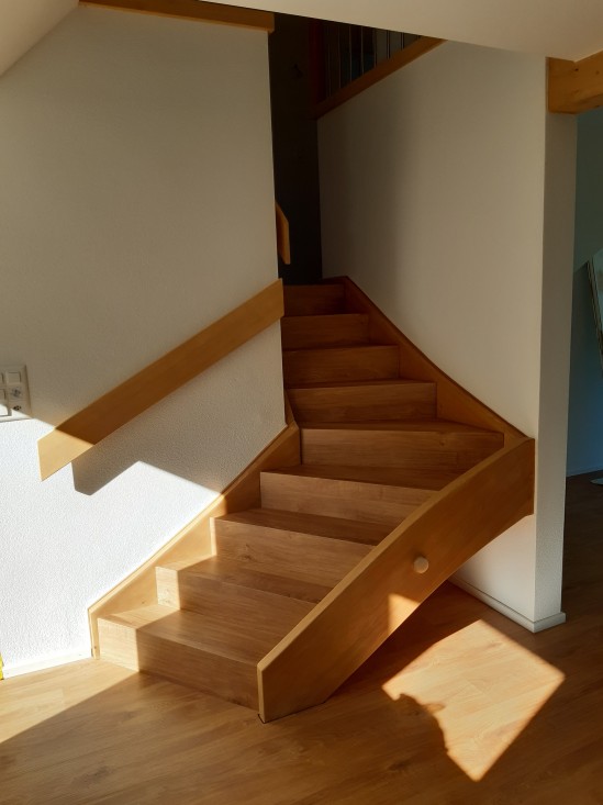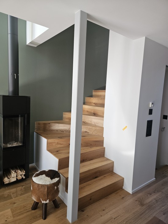 Eine Treppe ist weit mehr als nur eine Verbindung zwischen zwei Stockwerken; sie ist ein Möbelstück von architektonischer Bedeutung. Wir fertigen massgeschneiderte Lösungen, die sich perfekt in Ihre Räumlichkeiten einfügen – ob als klassisch gerade oder elegant gewundene Treppe. Dabei haben Sie die Wahl zwischen einer luftig-offenen Bauweise oder einer geschlossenen Variante für zusätzliche Stabilität und Stauraum. Passend zur Treppe realisieren wir Geländer, die das Design harmonisch abrunden. In puncto Optik sind keine Grenzen gesetzt: Wählen Sie aus diversen edlen Holzarten in Naturtönen oder entscheiden Sie sich für eine modern weiss gestrichene Ausführung, die sich dezent in Ihr Interieur einfügt.